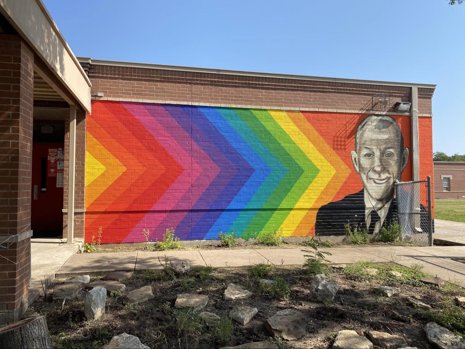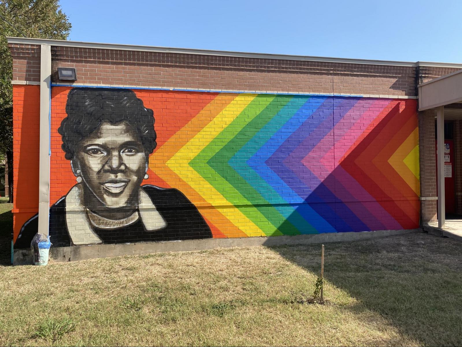 I recently had the opportunity to paint a mural at Barbara Jordan Elementary School on the northeast side of Austin. The mural is on two walls at the front of the school. The design process was a collaboration between Sade Lawson and myself. We combined our styles to give the school some color and pay tribute to Barbara Jordan and Gus Garcia. I painted the geometric rainbow and Sade painted the portraits. I was able to do a lot of painting during the first week of kids being back in the classroom and to hear their thoughts on the murals was extremely heartwarming. I’m very thankful for the opportunity and experience.